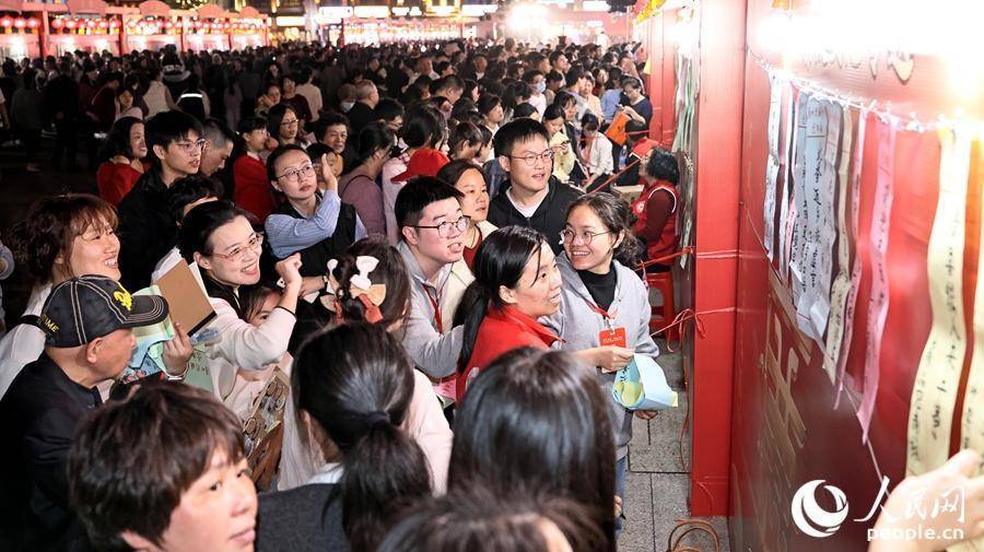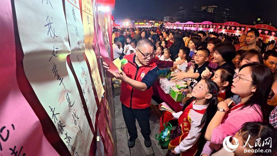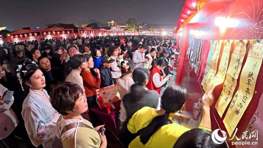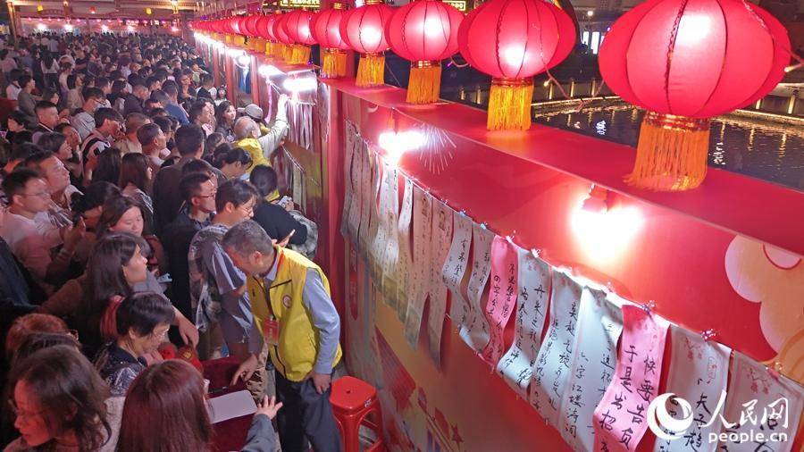 灯谜会猜现场氛围热烈,市民游客踊跃参与。人民网记者 李昌乾摄