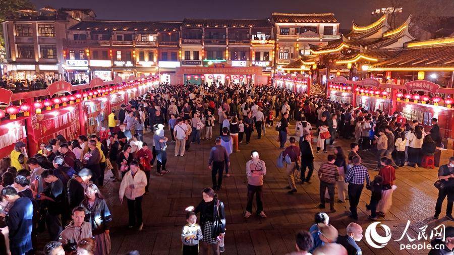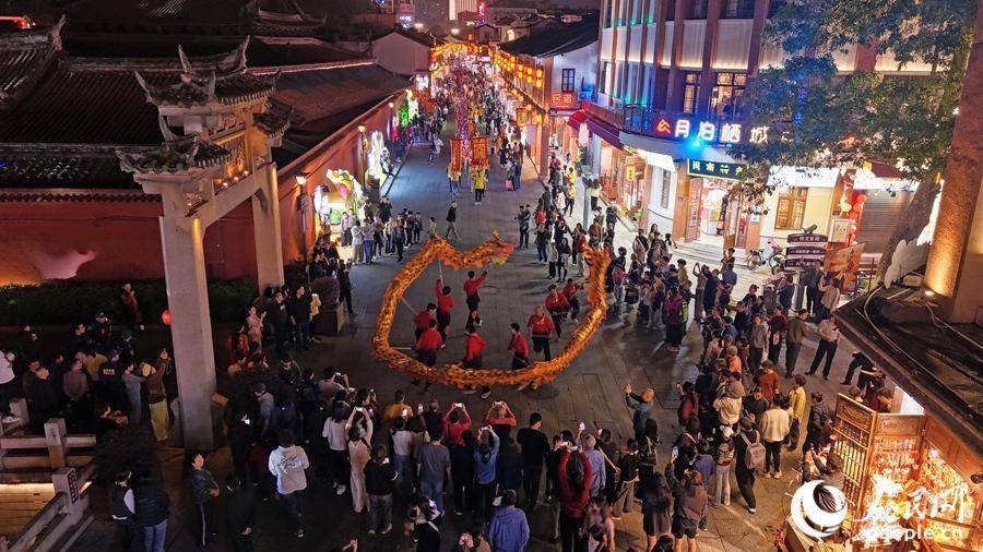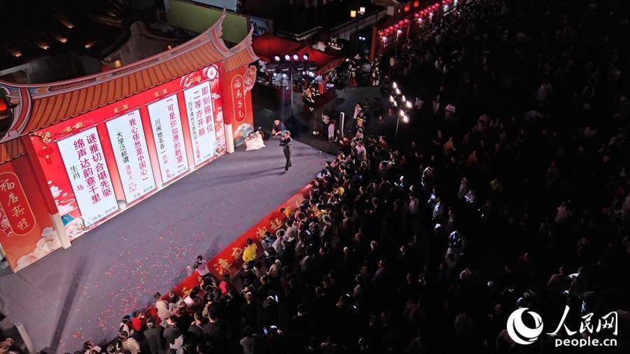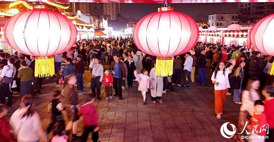 夜幕下的漳州古城流光溢彩,灯谜活动与民俗表演相映成趣。人民网记者 李昌乾摄