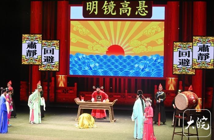 当晚演出的《双锁柜》该剧由“80后”“90后”“00后”三代演员共同演绎,他们青春靓丽,表演充满朝气与活力。