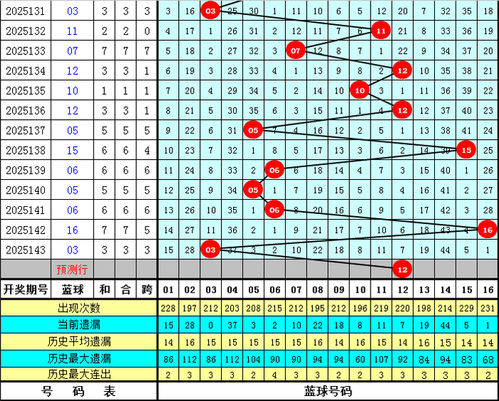 蓝球分析:上期蓝球开出号码03,下降13个点位,最近10期蓝球号码升平降分别为:升、降、升、降、升、降、降、升、升、降,本期防蓝球号码上升,一码蓝球关注12。