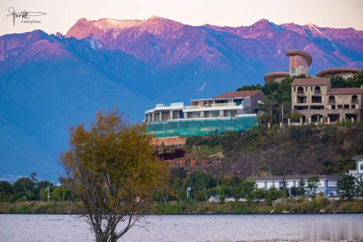 等到日出,勉强拍了几张算是“日照金山”的大场景,只是至今也没搞清楚对面的是什么山脉或者什么山(貌似尖尖上也有积雪了哦),但既然能跟苍山遥遥相对,想必也是有点来历和典故的吧。