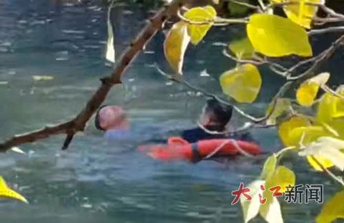 眼看落水男子离岸越来越远,体力也渐渐透支,冰冷的河水随时可能吞噬生命。任凭来不及多想,哪怕江水刺骨,他纵身一跃,扎进了冰凉的河水中,奋力朝着落水者的方向游去。